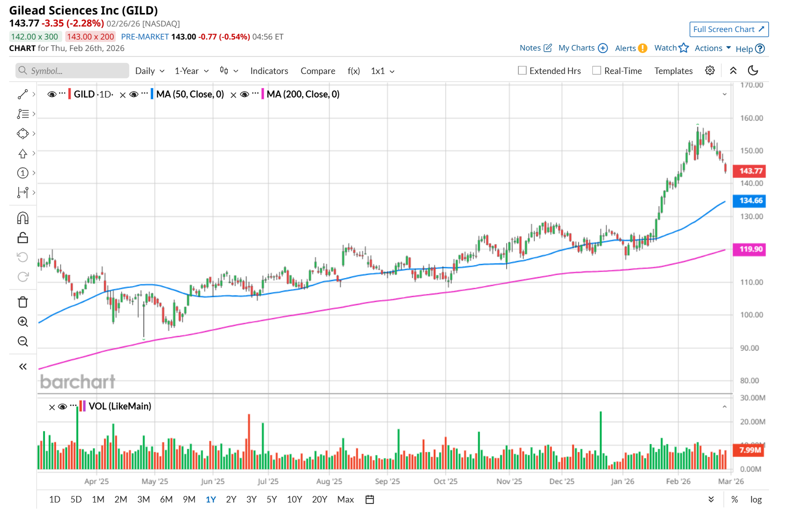 On Feb. 23, GILD entered into a definitive agreement to acquire Arcellx, Inc. (ACLX) for a total equity value of approximately $7.8 billion. The acquisition strengthens Gilead’s oncology portfolio, particularly in CAR-T cell therapy for multiple myeloma, while enhancing its cell therapy capabilities. This strategic move supports diversification beyond its core HIV franchise and reinforces its long-term growth outlook in high-value cancer treatments.