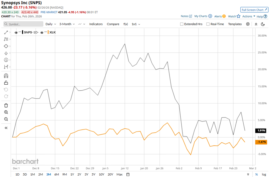Despite this, shares of the Sunnyvale, California-based company have decreased 35.4% from its 52-week high of $651.73. SNPS stock has increased nearly 4% over the past three months, outpacing the State Street Technology Select Sector SPDR ETF's (XLK) marginal decline over the same time frame.