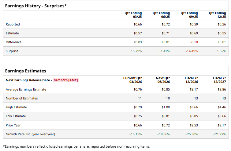 The streaming giant is expected to announce its fiscal Q1 earnings for 2026 after the market closes on Wednesday, Apr. 16. Ahead of this event, analysts expect this media and entertainment company to report a profit of $0.76 per share, up 15.2% from $0.66 per share in the year-ago quarter. The company has surpassed Wall Street’s bottom-line estimates in three of the last four quarters, while missing on another occasion.