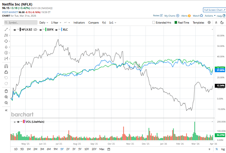 Shares of Netflix have gained 3% over the past 52 weeks, lagging behind both the S&P 500 Index's ($SPX17% return and the State Street Communication Services Select Sector SPDR ETF’s (XLC15.8% uptick over the same time period.