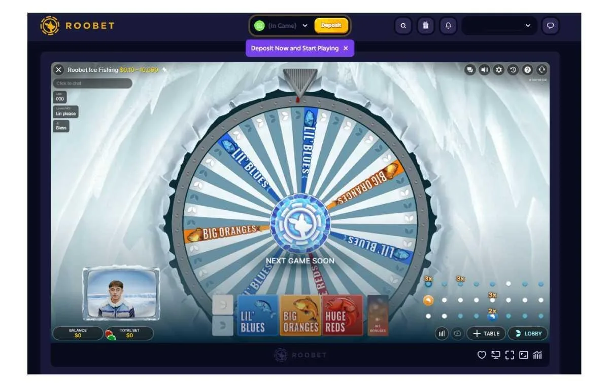 Ice Fishing follows a clear and simple structure that keeps rounds moving quickly. Each spin starts with the betting phase and ends when the wheel stops on one of its segments.