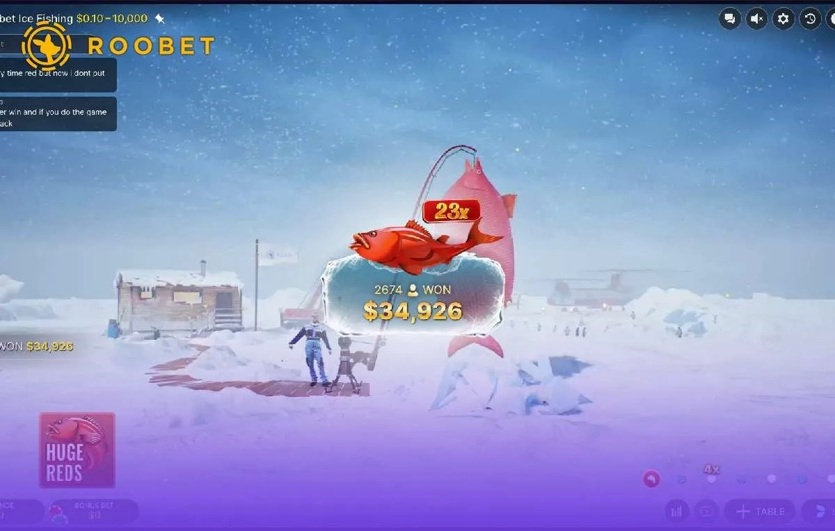 If the wheel lands on one of the fish segments, a bonus round begins. During this stage, the host selects a fish from beneath the ice display. Each fish carries a multiplier that determines the payout.