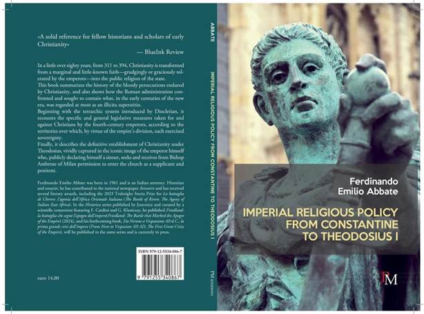 Imperial Religious Policy from Constantine to Theodosius I, a historical study by Italian historian and essayist Ferdinando Emilio Abbate, has been praised by leading U.S. review outlets, including Publishers Weekly, BookLife Reviews, Foreword Clarion Reviews, and BlueInk Review.