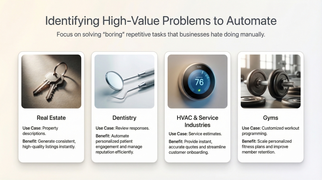 Early client engagement is concentrated in real estate, healthcare, HVAC, and fitness—sectors identified during the development phase as having repeatable workflows and immediate use cases for no-code, agentic automation. Rather than broad consumer marketing, outreach is focused on targeted business onboarding, including workflow assessment, configuration of plain-English command systems, and deployment of AI agents trained on industry-specific tasks.