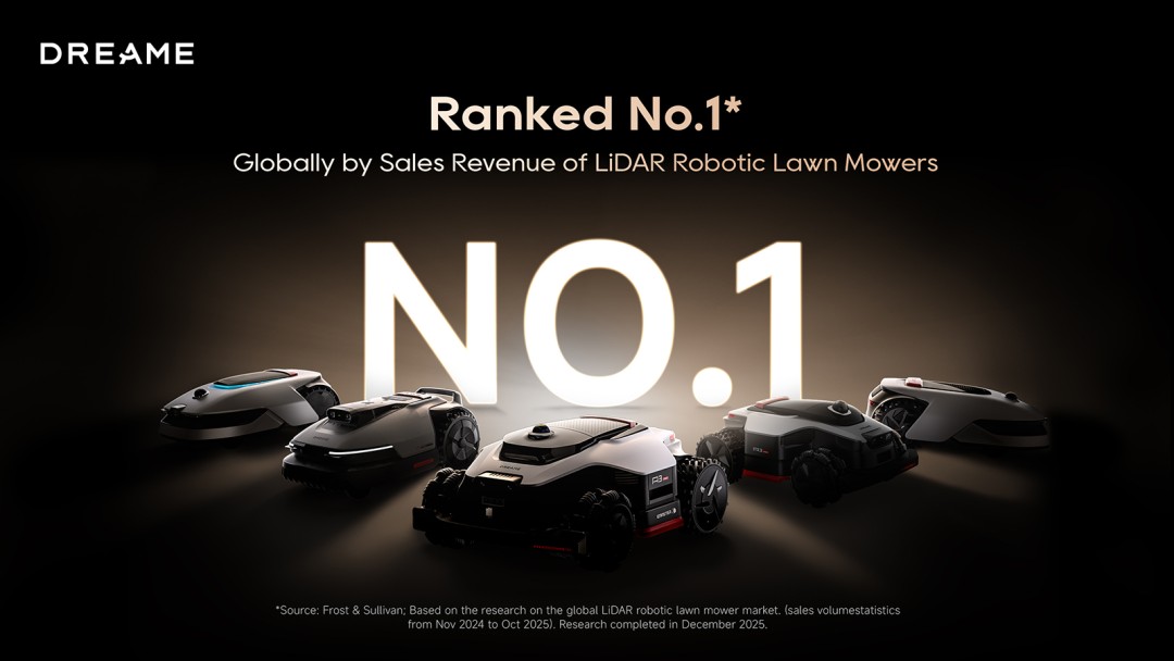 From its inception, Dreame Robotic Mower has pursued a global-first strategy. To date, Dreame’s robotic mower portfolio has demonstrated strong international momentum and has been recognized by Frost & Sullivan as No.1 globally by sales revenue of LiDAR robotic lawn mowers*(November 2024-October 2025)