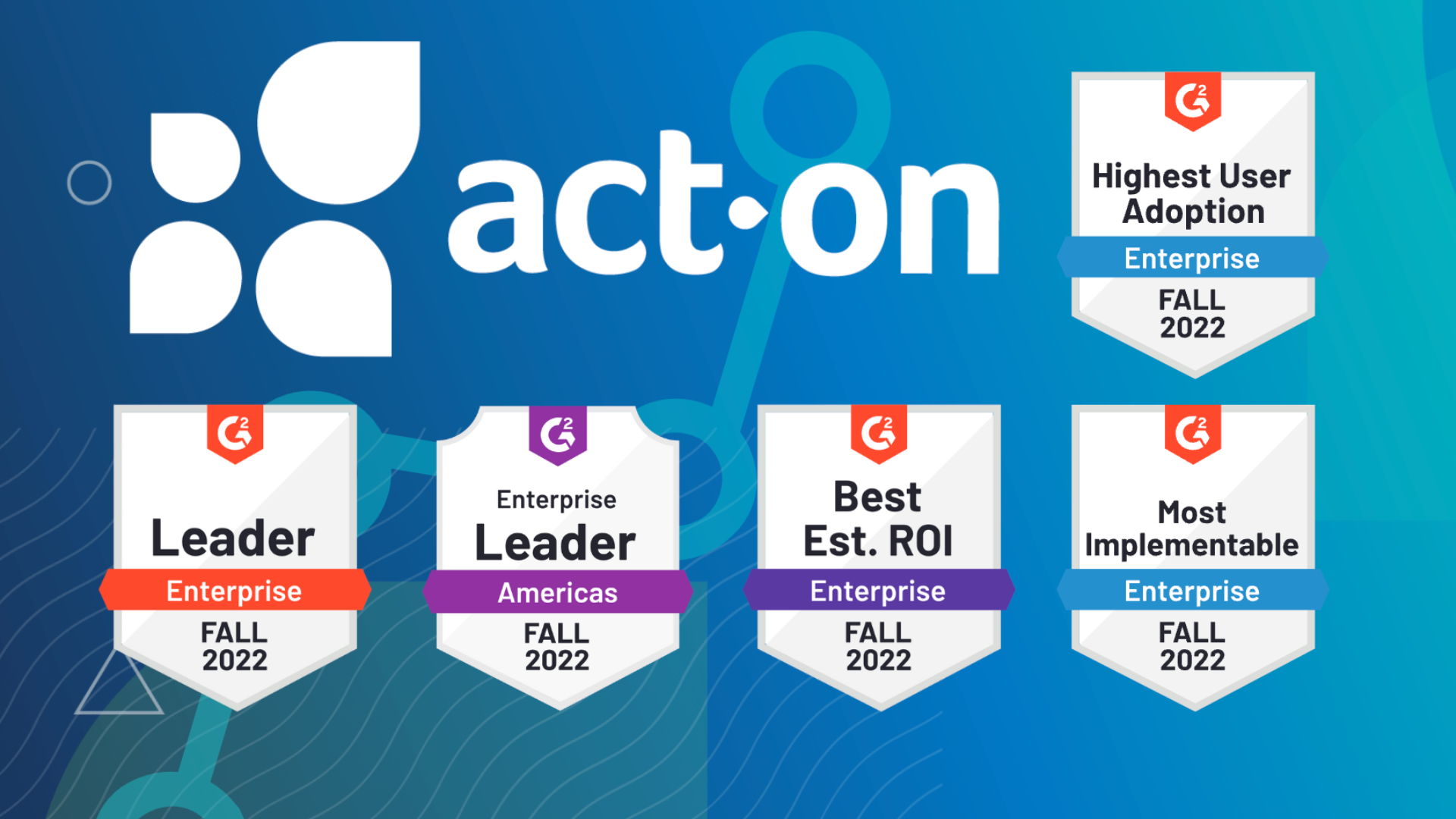 Act-On Software earned G2 badges for Most Implementable and Highest User Adoption in G2’s Enterprise Implementation Index for Marketing Analytics. Act-On also helped businesses succeed, earning the rank of Best Estimated ROI (return on investment) product in the enterprise category.