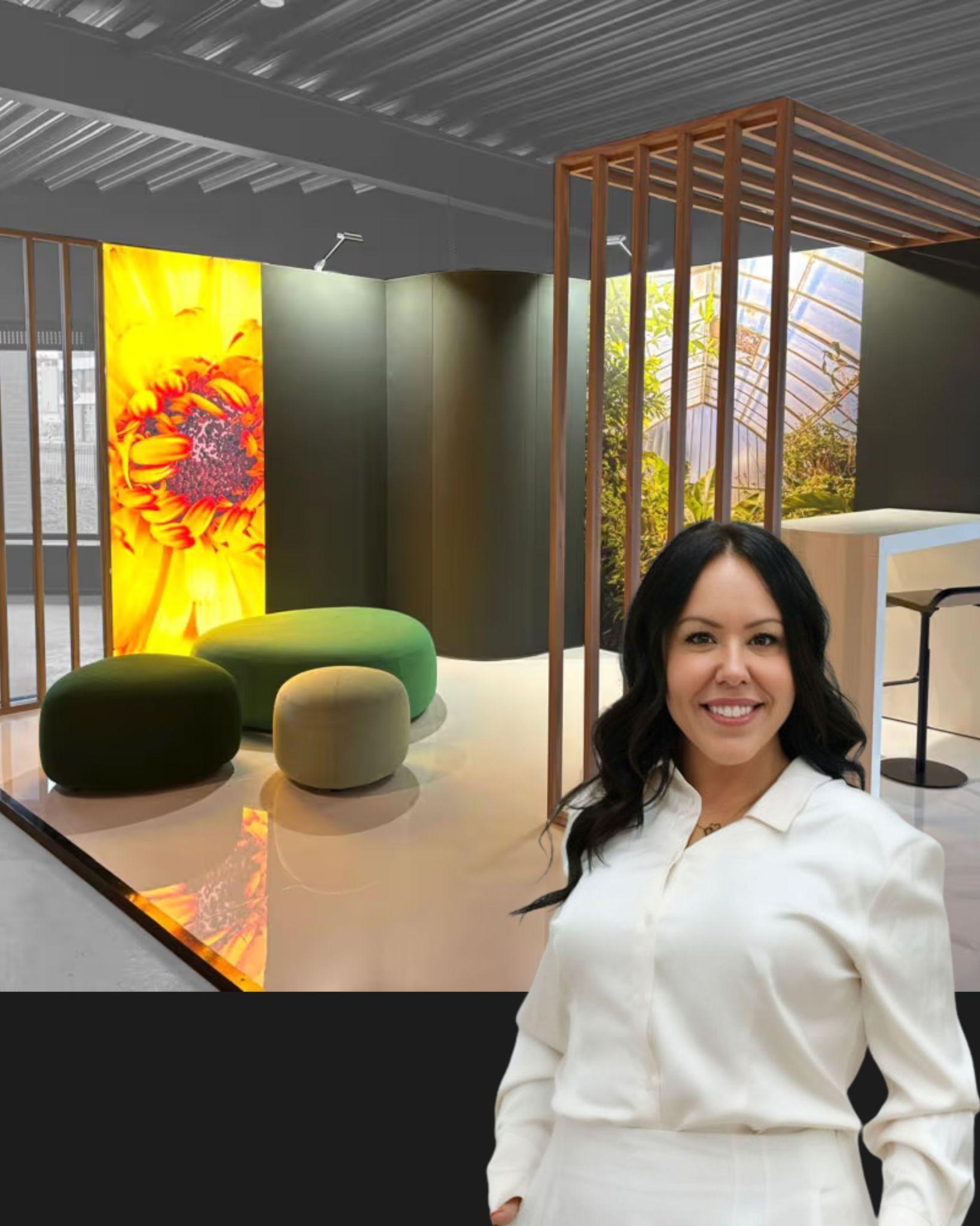 A custom exhibition stand designed by Outstanding Exposition, featuring Co-founder Stéphanie Raymond