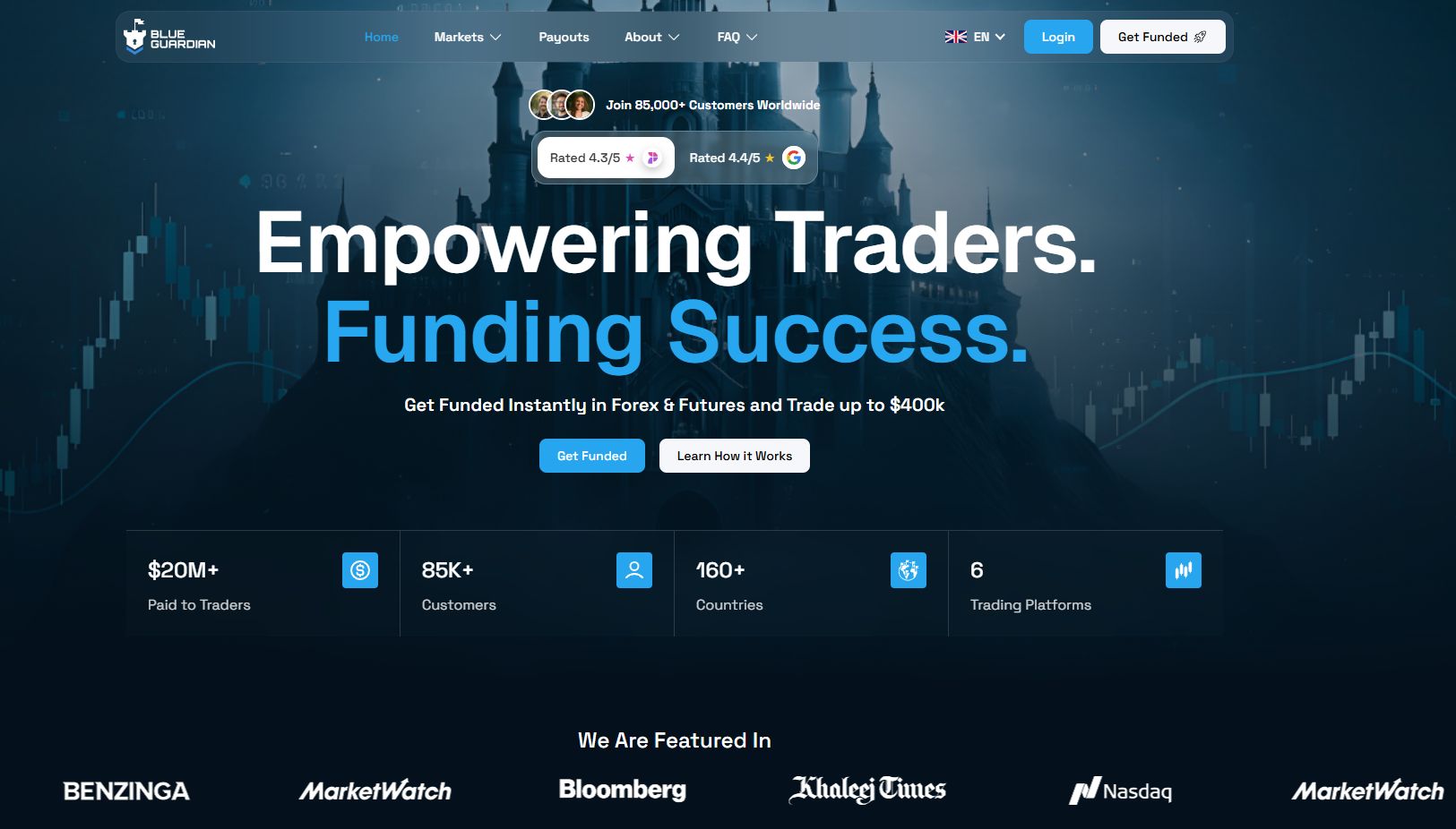 Working with Blue Guardian provides traders with a structured pathway into funded trading through both forex and futures markets. The firm operates as an evaluation-based platform, where traders must complete specific trading challenges to qualify for funded accounts. Instead of using real client deposits, Blue Guardian assesses traders in a simulated environment, focusing on consistency, risk management, and profitability before granting access to capital.
